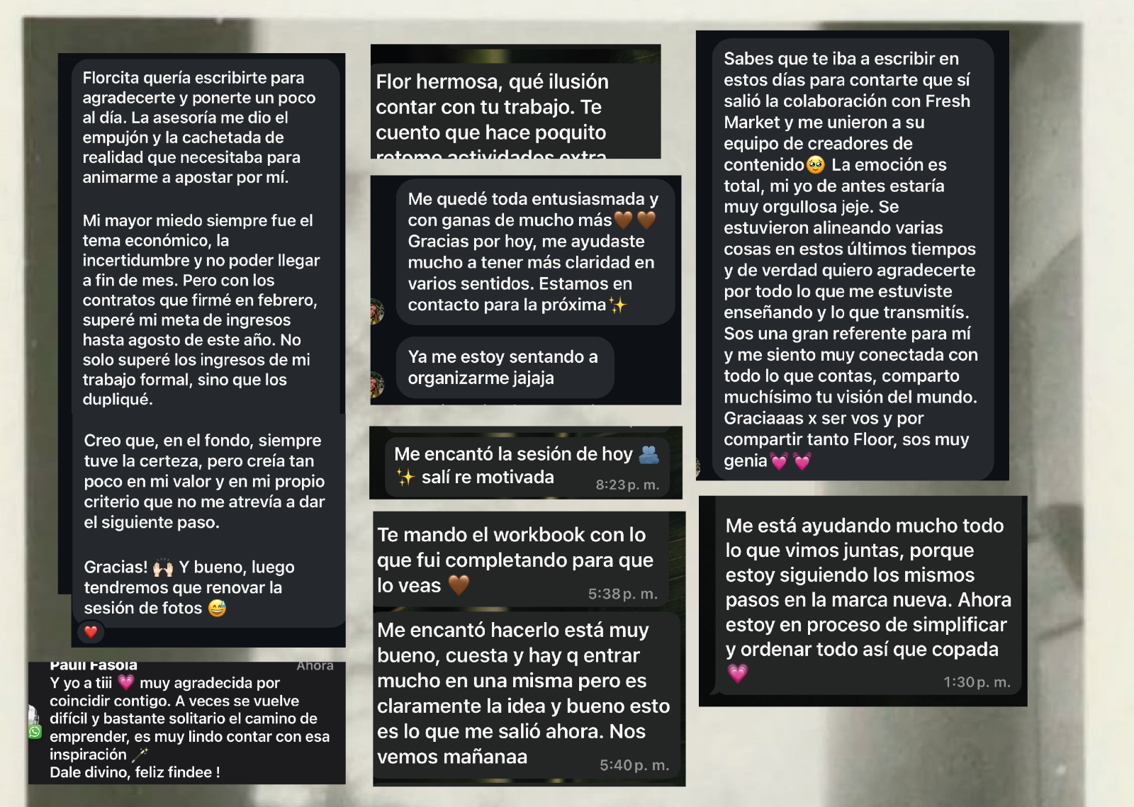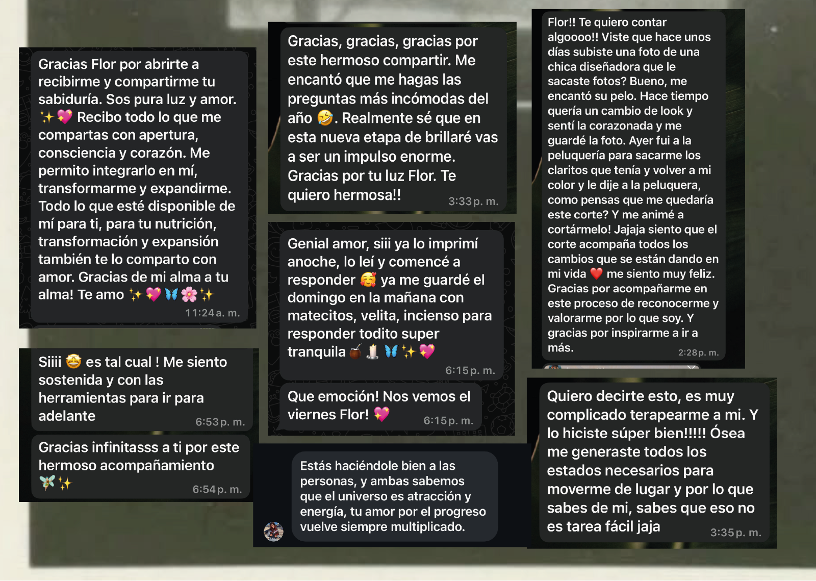 ‘‘La consultoría con Flor me sirvió para ampliar la mirada, recibir escucha atenta y una preciosa guía para ir abriendo capas de información a mi favor.